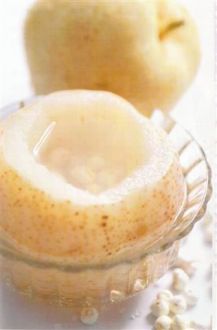 将梨洗净去核,再取川贝母3克、百部6克、陈皮6克洗净后,放入梨心中,上锅蒸熟,每日食用一个。蒸梨止咳化痰,对支气管炎的咳嗽、有痰不易咳出有较好的疗效。